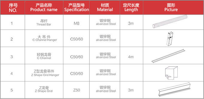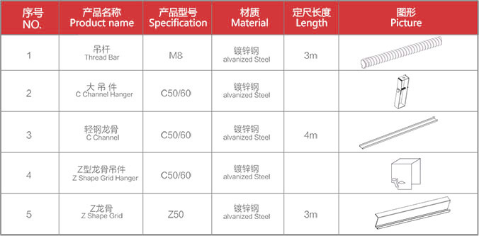 型材铝网系列选用附件表 LAY IN ALUMINUM WIRE SUSPENSION SYSTEM