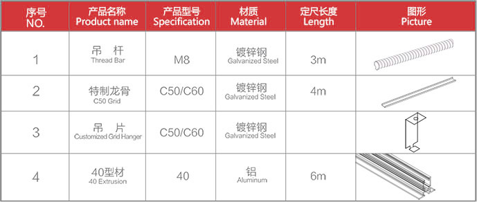 ●Lay In Extrusion, External Frame and Interior Frame are available, form the permeable effect by expanded and provide the vision of light and shade staggered.