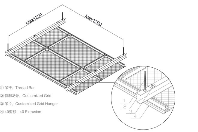 Lay In extrusion expanded wire system has the effect of opening and permeable, also it is one of the ideal solutions of the large building ceilings.