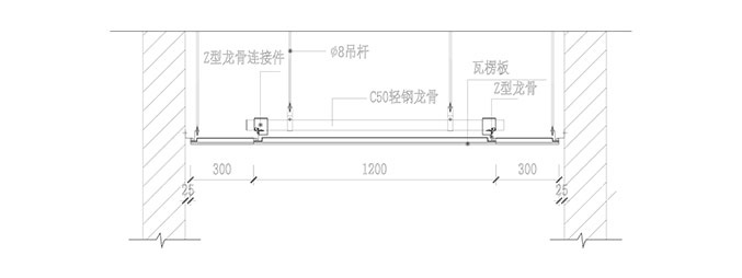 瓦楞板吊顶安装示意图 CORRUGATED PANEL INSTALLATION DETAIL