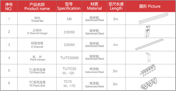 TU/TC系列条板选用附件表 TU/TC PLANK SUSPENSION SYSTEM