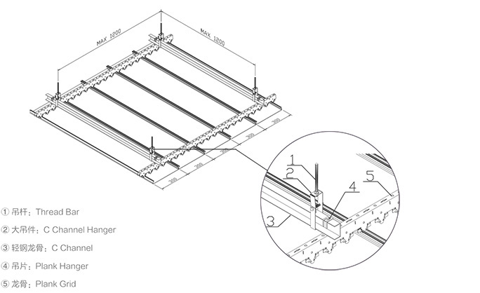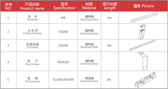 TG系列条板选用附件表 TG PLANK SUSPENSION SYSTEM